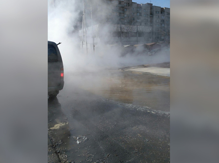 Фото: двор на Сибиряков-Гвардейцев залило кипятком и окутало паром
