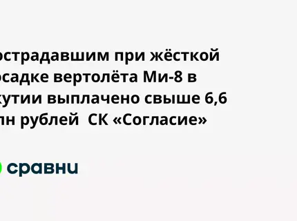 Пострадавшим при жёсткой посадке вертолёта Ми-8 в Якутии выплачено свыше 6,6 млн рублей СК «Согласие»
