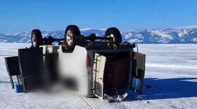 Машина с туристами перевернулась на льду Байкала