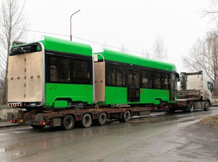 В Екатеринбург привезли первый в России пятисекционный трамвай