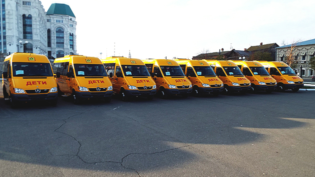 Благотворительная передача 19 школьных автобусов Mercedes-Benz в Астрахани