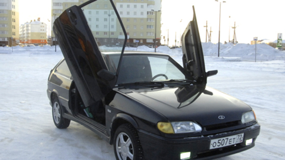 Житель Нового Уренгоя Айдар Бакиев «прокачал» свой ВАЗ‐2113 и сделал из обычной легковушки Lamborghini. Об этом сообщило агентство Ura.ru. Фото: «Красный Север». По словам Бакиева, превратить «Ладу» в «Ладарджини» его вынудила мечта детства и отсутствие денег на настоящую Lambo. С детства хотел, чтобы в будущем моя машина выделялась из общей массы и ее двери открывались бы вверх. На покупку «Ламборджини», конечно, не хватило денег, поэтому решил переделать свою первую машину — Айдар Бакиев. Мужчина срезал старые дверные петли и прикрепил к переднему лонжерону ламповый механизм. Для того, чтобы двери поднимались плавно, он установил три газлифта. Инструкцию по переделке он нашел в интернете. Все стекла Айдар затонировал. Однако не все оценили изобретательность автолюбителя. Инспекторы ДПС выписали Айдару штраф в 500 рублей, попросили снять тонировку и поставить стандартные двери. ГИБДД планирует упростить процедуру регистрации тюнинга на автомобили и включить ее в список госуслуг.