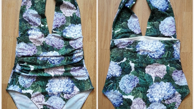 Для создания этого купальника вам понадобится: Бифлекс с принтом - 70 см (ширина 140 см) Лоскут тонкого однотонного бифлекса для подкладки - примерно 50х70 см (можно использовать трикотаж-масло) Резинка для обработки верхней части спинки и вырезов для ног - около 1,5 метров Калька для выкройки Ножницы, нитки, булавки Швейная машина Оверлок (можно обойтись без него). Свой купальник я шила преимущественно на оверлоке, но если у вас его нет, можно использовать обычную швейную машинку и специальные иглы для трикотажа. Итак, приступим. 1. Для начала вы должны определиться с выкройкой. Можно использовать обычную базовую выкройку (возможно в каких-то старых выпусках Бурда есть такие). Необходимо обрезать выкройку по высоте до пройм. Переднюю деталь необходимо раздвинуть в высоту для того, чтобы сделать сборку в боковых швах. И дорисовать 2 лямки-завязки. Моя выкройка выглядит так: 2. Выкраиваем из принтованного бифлекса все детали со сгибом. Из однотонного бифлекса - переднюю деталь купальника ДО того как вы раздвинули ее для сборки. 3. Детали завязок складываем лицевой сторой внутрь и прошиваем открытый срез. Выворачиваем и аккуратно выравниваем уголок. 4. На передней детали купальника присбариваем боковые срезы, чтобы их длина совпала с длиной боковых срезов спинки и детали подкладки. 5. Все детали купальника (кроме завязок) скалываем по поперечному шву между ног таким образом, чтобы при выворачивании сам шов оказался между передней деталью купальника и подкладкой. Прошиваем. 6. Детали завязок прикалываем к верхней части купальника лицевой стороной к лицевой стороне на одинаковом расстоянии от центра переда. У меня это 0,5 см в каждую сторону. 7. Детали купальника складываем как на фото, чтобы при сшивании верха купальника и подкладки все швы остались внутри. 8. Скалываем верхнюю переднюю часть купальника и подкладку. Прошиваем. 9. Выворачиваем купальник через боковой шов. 10. Отрезаем резинку для обработки верхнего края спинки короче основной детали примерно на 3 см. Прикалываем и слегка натягивая пришиваем. 11. Пришитую резинку отворачиваем на изнаночную сторону и отстрачиваем строчкой зиг-заг. Настройки моей машинки на фото. 12. Отрезаем резинки для обработки вырезов ног короче основных деталей примерно на 3 см. Прикалываем и слегка натягивая пришиваем. НА ЭТОМ ЭТАПЕ МЫ НЕ ОТСТРАЧИВАЕМ ВЫРЕЗЫ ДЛЯ НОГ ЗИГ-ЗАГОМ! 13. Складываем купальник изнаночной сторной наружу и аккуратно скалываем боковые швы. Прошиваем. 14. И только теперь мы отворачиваем резинку, пришитую к вырезам ног, на изнаночную сторону, прикалываем и аккуратно делаем отстрочку зиг-загом. 15. В верхней части боковых швов отворачиваем припуски на спинку и пришиваем на машинке обычной строчкой вниз примерно на 1,5 см. 16. Купальник готов! Теперь вы можете сражать всех свой красотой ))))