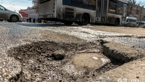 Весна наступила, а вместе с ней и транспортный коллапс. По печальной традиции в Самаре вместе со снегом «растаяли» дороги. 63.ru составил хит-парад ям на улицах города. Ново-Вокзальная: асфальт смыл «водопад» Звание самой разбитой дороги в Самаре сейчас по праву носит улица Ново-Вокзальная. Уже который год горожане требуют ремонта дороги. На некоторых участках проводили аварийные работы. Но вот опять с наступлением весны дорога буквально превратилась в поле боя. Так выглядит участок между проспектом Карла Маркса и улицей Стара-Загора Во время оттепели по дороге буквально текут реки Ямы — как после бомбежки. И «прячутся» они под лужами. Преодолевая эту полосу препятствий, несколько десятков автомобилистов пробили колёса своих машин. Автомобилистам стоит здесь ездить с осторожностью Один автомобилист не выдержал и обозначил опасную яму пробитым колесом Мольбам автомобилистов внял самарский отдел ГИБДД. Сотрудники ведомства выдали властям Самары предписание о ремонте дороги. Если ямы не залатают к началу недели, то ее закроют для движения транспорта. Причем на всём протяжении. В ГИБДД считают, что по такой дороге опасно ездить Известно, что власти Самары запланировали проведение ремонта улицы Ново-Вокзальной. Восстанавливать проезжую часть будут картами длиной по 100 погонных метров. Новый асфальт уложат на площади 62,5 тысячи квадратных метров — от Ново-Садовой до Вольской, но только при наступлении благоприятной погоды. Подрядчик должен будет выполнить и работы по отведению воды с проезжей части. Пока же, по всей видимости, властям Самары придется организовать ямочный ремонт дороги. Проспект Карла Маркса: а где собственно дорога? В ожидании глобальной реконструкции «замер» и проспект Карла Маркса. От дороги тут мало что осталось. Автомобилисты переваливаются из ямы в яму Участок у перекрестка с Ново-Вокзальной Ремонтировать дорогу также будут, когда станет тепло и сухо. Укладывать асфальт подрядчики будут картами по 100 метров. Обновят следующие участки: от Авроры до Врубеля, от 3-го проезда до Гагарина, от XXII Партсъезда до Советской Армии, от Ракитовского шоссе до Алма-Атинской, от Алма-Атинской до Ташкентской, от Ташкентской до проспекта Кирова. Улица Волгина: точечный удар Омрачили ямы и быт жителей небольшой улицы Волгина. В районе пересечения с улицей Аэродромной можно угодить вот в такую ловушку. Яму залила вода А рядом... Эти ямы автомобилисты объезжают по встречке Берегите колёса! По информации властей, улицу Волгина в этом году тоже ждет ремонт — на участке от Промышленности до Мориса Тореза. Также в Железнодорожном районе приведут в порядок улицы Дзержинского (от Клинической до Мяги), Речную (от железнодорожного переезда до Клинической), Буянова (от Тургенева до Вилоновской) и Никитинскую (от Льва Толстого до Вилоновской). Улица Врубеля: не угодить бы под трамвай Меньше повезло улице Врубеля. В плане на ремонт дорог ее пока нет. Зато ямы тут как тут. Скорее всего, эти ямы заделают литым асфальтом Рядом проходят трамвайные пути Улица Больничная: пора лечить! Нуждается в ремонте и улица Больничная. Дорога, которую многие автомобилисты используют для того, чтобы объехать пробку на улице Мичурина, вся испещрена ямами. Ямы глубокие А некоторые причудливой формы А качество каких дорог не устраивает вас? Пишите в комментар
