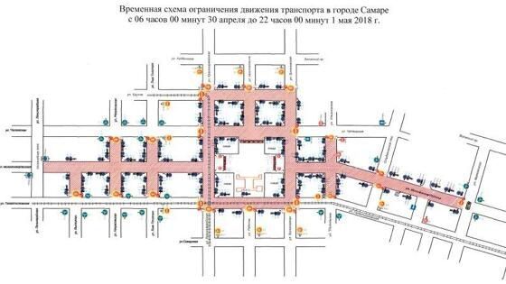 30 апреля и 1 мая в Самаре будет ограничено движение транспорта. С 6 утра 30 апреля и до 10 вечера 1 мая проехать нельзя будет по следующим улицам: - Молодогвардейской - от Ленинградской до Студенческого переулка; - Высоцкого - от Галактионовской до Молодогвардейской; - Некрасовской - от Галактионовской до Чапаевской; - Льва Толстого - от Галактионовской до Чапаевской. - Красноармейской - от Галактионовской до Фрунзе; - Вилоновской - от Галактионовской до Фрунзе; - Фрунзе - от Красноармейской до Вилоновской; - Шостаковича - от Чапаевской до Фрунзе; - Чапаевской - от Красноармейской до Вилоновской; - Ульяновской - от ул. Галактионовской до ул. Чапаевской. В Праздник Весны и Труда с 6 утра до 4 часов вечера нельзя будет передвигаться еще и по Галактионовской - от Красноармейской до Вилоновской. Фото: Администрация г. о. Самара