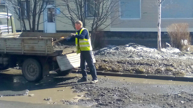 Лопата и желтая жилетка – арсенал Кемских дорожных рабочих. Паблик «Общественный контроль г. Кемь» публикует фоторепортаж о том, как одинокий ремонтник с лопатой пытается справиться с ямами на дорогах города. Фотографии сопровождаются саркастическими комментариями. «Вот так у нас на Пролетарской пр-те делается ремонт асфальтовой дороги, автовладельцы можете смело фиксировать битые стекла сломанные подвески и подавать в суд…» «Это в Кеми может быть такой дурдом! И причём в каждый год! Через 5 минут уже ничего в этих ямах нет!» «Это уже полный беспредел! И даже не боятся чиновники, зная заранее, что это попадёт в интернет… У меня слов нет». Попадает это, впрочем, не только в интернет. Общественный контролер Борис Строгальщиков направил эти «веселые картинки» Главе республики Артуру Парфенчикову: «Уважаемый Артур Олегович! Неужели так архаично, одной лопатой, будем проводить ямочный ремонт дорог в Кеми?» Впрочем, наверняка в почте г-на Парфенчикова уже не один миллион таких писем. По материалам: ptzgovorit.ru