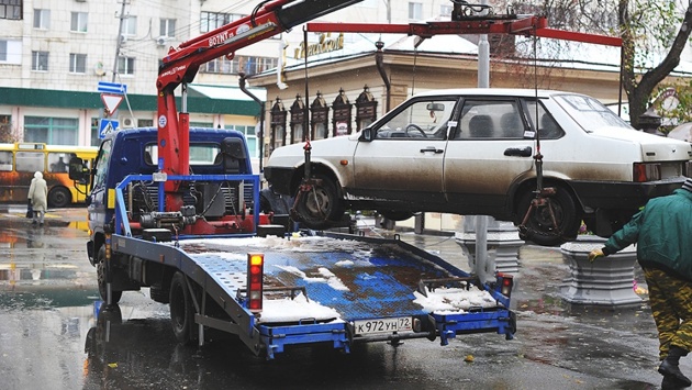 Машины в центре Тюмени, мешающие проведению парада, увезут на эвакуаторе на свободные парковки