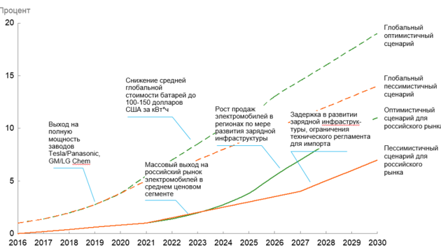 Автомобильная отрасль переживает самую серьезную трансформацию с момента создания двигателя внутреннего сгорания — практически все топовые автопроизводители заявили о планах перейти на электродвигатели. Porsche планирует перевести половину своего модельного ряда на электропривод к 2023-му году, General Motors, поставили себе цель продавать по миллиону электрокаров в год к 2026-му, Toyota будет продавать по 5,5 млн гибридных и полностью электрических авто к 2030-му. Volvo откажется от выпуска новых моделей на двигателе внутреннего сгорания уже с 2019-го, Jaguar Land Rover — с 2020-го. Aston Martin ожидает, что как минимум 25% продаж марки будут приходиться на электромобили к 2030-му. BMW планирует иметь как минимум 25 электро- и гибридных моделей к 2025 году, из которых 12 будут полностью на электроприводе. Альянс Renault Nissan и Mitsubishi пополнят свой модельный ряд 12-ю новыми электромобилями к 2022 году. Список можно продолжить, наверняка в ближайшие годы мы услышим такие заявления и от других производителей. Проложенная романтиками из Tesla тропинка, похоже, скоро превратится в восьмиполосное шоссе, ведь все гранды опираются на статистику продаж, которая рисует радужные перспективы электромобильному бизнесу. Согласно исследованию Frost&Sullivan в 2017 году продажи электромобилей превысили 1,2 млн единиц (около 1,7% от общего объема продаж новых автомобилей (1,1% годом ранее). Рост продаж составил более 51%, при этом ожидается, что уже в 2018-м году продажи вырастут до 1,6 млн единиц (для сравнения: это примерно весь отечественный рынок легковых авто), и перешагнут отметку в 2 млн в 2019-м. Интересно, что динамика роста продаж автомобилей на полностью электрической тяге оказалась почти в два раза выше скорости роста продаж гибридных авто. Инвестфонд Macquarie ожидает, что уже к 2022 году доля электрокаров в общем объёме мировых продаж достигнет 5%, что говорит о создании значительного нового рынка. Подстегивают рынок и регуляторы: в Китае, на который сегодня приходится почти половина мирового рынка электромобилей, покупатели электрокаров получают значительные льготы на федеральном и региональном уровне, а также возможность зарегистрировать автомобиль в приоритетном порядке ( на регистрацию обычного автомобиля уходят месяцы). При этом в Поднебесной действует комплексная программа стимулирования автопроизводителей к инновациям в области производства электрокаров и аккумуляторов с целью как можно скорее улучшить сложную экологическую ситуацию в стране. В Европе же пионерами являются Франция и Великобритания, объявившие в прошлом году о планах запретить продажу новых авто на двигателе внутреннего сгорания к 2040-му году. Важнейшим фактором повсеместного перехода на электротягу является появление электрогрузовиков и рост спроса на них — это означает, что к таким технологиям проявляет интерес крупный бизнес. А где крупный бизнес — там и крупные заказы, а значит — длинные деньги, новые требования к производительности и твердые контракты. Tesla уже получила предзаказы на сотни своих траков Semi от таких гигантов, как PepsiCo, UPS и FedEx, над созданием электрических грузовиков активно работает Volvo Trucks (FL Electric) и Mercedes Benz (eActros), а Daimler уже начала поставки малого электрогрузовика Fuso eCanter в Европе. А у нас в машине газ А что же в России? Увы, но президент Владимир Путин не далее, как в апреле 2018 года на совещании с членами правител