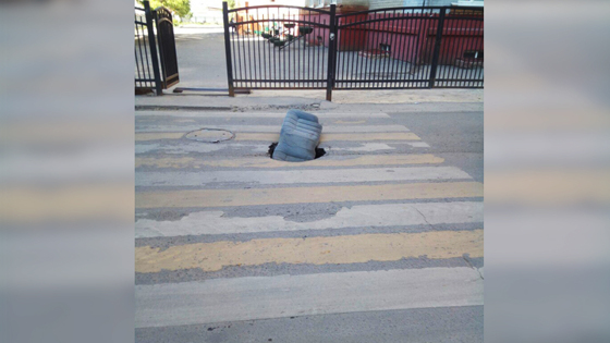 В центре Воронежа на пешеходном переходе у школы провалился асфальт