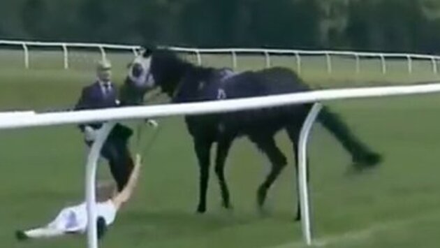 Спортивный корреспондент бросилась под копыта помчавшего коня, пытаясь остановить животное. Девушка упала, но не выпустила поводья и смогла усмирить животное. Журналистка готовила сюжет о скачках для одного из спортивных телеканалов, когда один из коней неожиданно скинул наездника и понесся по трассе. Девушка встала на пути у животного, которое бежало со скоростью около 50 километров в час, пытаясь его остановить. Она схватилась за поводья и упала. Конь немного протащил репортера по земле но все же в итоге остановился, сообщают "Дни.ру". Смелый поступок восхитил коллег журналистки и спортсменов.