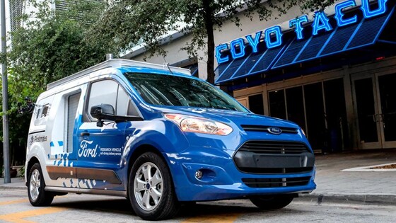 Компания Ford начала тестировать автоматическую доставку товаров и еды с помощью специально модифицированного коммерческого фургона Transit Connect. В настоящее время пилотный проект с Postmates запущен в Майами и Майами-Бич. В нем участвуют более 70 компаний. Жителям районов, где запущен проект, при заказе продуктов или других товаров предоставляется возможность выбрать опцию доставки на автономном автомобиле. В модифицированном фургоне Transit Connect появилось три бокса – один со стороны пассажира и два сзади. Одна машина сможет обслуживать сразу несколько заказов в рамках одного маршрута. Боксы для доставки отличаются по размеру, при этом каждый снабжен парой подстаканников для безопасной перевозки напитков. По итогам проекта будет определена оптимальная конфигурация таких боксов. После того как автомобиль с товаром прибывает в пункт назначения, пользователь получает SMS о том, что заказ можно забрать. На сенсорном экране нужно набрать код доступа, полученный после размещения заказа, после чего на дисплей выводится сообщение с указанием о местонахождении товара, и загорается подсветка соответствующего бокса.