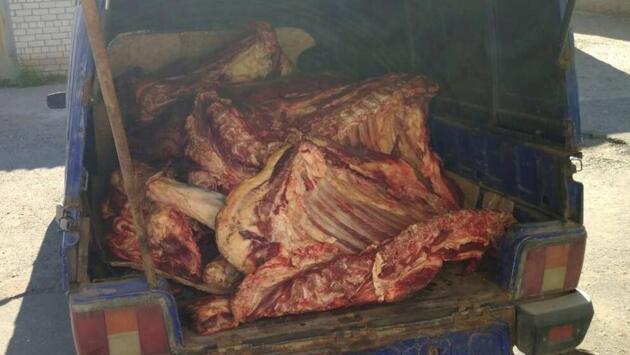 Автомобиль с опасным грузом был выявлен ранним утром 28 июня на подъезде к городу Кирову. Сотрудники кировской ГИБДД при досмотре фургона обнаружили мясо крупного рогатого скота в четвертинах без оттисков ветеринарных клейм. Мясо перевозилось с нарушением условий перевозки и без ветеринарных сопроводительных документов, характеризующих происхождение и безопасность продукции. Опасный груз был арестован и помещен на ответственное хранение. Решается вопрос об её уничтожении. По данному факту управлением ветеринарии возбуждено административное производство, предусмотренное Кодексом РФ об административных правонарушениях. Фото – gtrk-vyatka.ru
