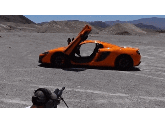 Видео: Выстрел бронебойным патроном сквозь «Макларен» по баллонам с газом