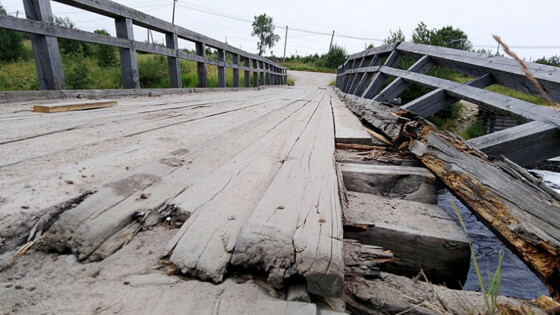 Граждане бьют тревогу в соцсетях. Паблик «Беломорская трибуна» публикует жутковатые кадры пешеходного моста в селе Сумский Посад, сделанные жителем района Владимиром Гущиным. «После неоднократного запроса в администрацию пообещали поменять настил до конца сентября 2018 года, а вот поможет ли это мосту? Ряжи почти развалились…» — пишет Владимир. Жители поселка в комментариях отмечают, что мост построен относительно недавно, после того как был снесен льдом старый мост. При этом стоит отметить, что это еще далеко не самый худший мост в Беломорском районе. Это ведь не Крым… По материалам: ptzgovorit.ru