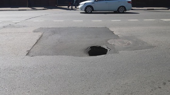 Об этом на своей странице в социальной сети сообщил Алексей Яковлев: «Осторожно, яма-убийца на улице Советской напротив ЛВЗ! Дозвониться в дежурку мэрии невозможно». Провал образовался рядом с одним из люков. Возможно, причиной ЧП стала коммунальная авария. Передвигаться по про проезжей части опасно.