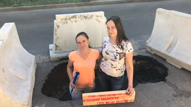 «Ждём реакции властей»: активисты неделю борются с огромным провалом в центре Нижнего Новгорода