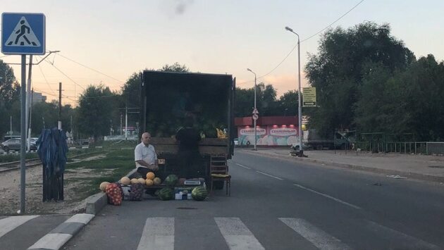 Арбузы в Саратове продают прямо на пешеходном переходе