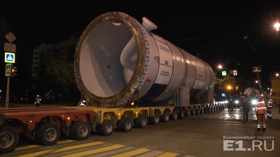 Гигантские баки-адсорберы для Газпрома, которые сделали на Уралхиммаше, почти добрались до Перми. Сейчас автопоезд находится в районе города Кунгура Пермского края. Наши коллеги с портала 59.ru подготовили фоторепортаж с трассы, по которой проходит перевозка адсорберов. Предлагаем вам ещё раз посмотреть на это грандиозное зрелище. Напомним, баки движутся с очень низкой скоростью. Автомобилям, движущимся позади колонны, тоже приходится ехать медленно. Чтобы пропустить собравшиеся в пробку автомобили, колонна съезжает на обочину раз в час, передают корреспонденты из Перми. Обогнать невозможно, хотя некоторые лихачи и пытаются. Но их останавливают патрули ДПС, сопровождающие колонну. 21 августа всё шло по плану до поворота на Юго-Камский. Около 20:00 колонна подъехала к нему, и первый бак зацепил провод, висящий над дорогой. ЧП произошло на развязке, поэтому движение встало. Провода пришлось поднимать, но один оборвался. — За весь путь первый раз такая ситуация, — рассказал один из сотрудников машины сопровождения. — Раньше провода либо убирали, либо поднимали. В этот раз поднимать провода пришлось самостоятельно с помощью длинных палок, похожих на удочки, со щупами на концах. По данным 59.ru, без света жители ближайших районов не остались. В конце маршрута — в Юго-Камском — баки должны погрузить на баржу и отправить в Ленинградскую область. Адсорберы нужны Газпрому для строительства трубопровода «Северный поток — 2», по которому газ должен поступать в Европу. Длина баков 19 метров, а ширина — шесть метров. Каждый из них весит 186,3 тонны. Автоколонна выехала из ворот завода 15 августа. Посмотреть, как баки двигались по Екатеринбургу, можно в этом фоторепортаже. На границе Европы и Азии в автоколонну влетела легковушка. В самом городе ради баков приподнимали провода и демонтировали светофоры, а в посёлках под Екатеринбургом отключили свет.