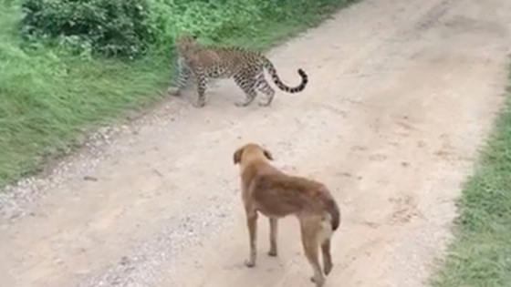 Пес дал отпор прыгнувшему на него леопарду и остался жив