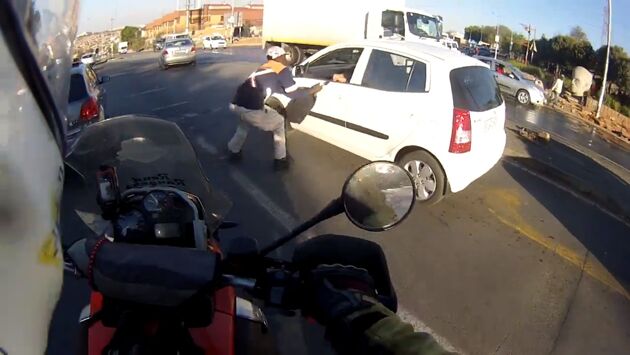 Житель Йоханнесбурга Антон Дамхейс заметил преступника, который пытался украсть сумку из чужого авто, и помешал ему. Воришка к такому повороту событий был явно не готов. Любопытную историю неудачной кражи опубликовал портал Unilad. Некий мужчина, на котором был светоотражающий жилет, странно себя повел возле припаркованной на дороге машины. Это заметил случайный байкер, житель южноафриканского города Йоханнесбург, Антон Дамхейс. На своем мотоцикле он подъехал поближе и стал свидетелем преступления. Под видом поиска попутной машины преступник выхватил сумку у водителя остановившегося авто. Даймхейс не растерялся и наехал на незадачливого вора колесом своего байка. Тот испугался, бросил сумку и стал убегать. Скрыться у него получилось. По воле случая, инцидент попал в объектив камеры. За пару дней ролик набрал более 300 тысяч просмотров. Многие зрители возмутились тем, что водитель, которому вернули его сумку, даже не поблагодарил спасителя. Но потом пользователь Phillip Coetser, который и был за рулем, объяснил, почему сразу уехал. «Я хочу поблагодарить вас за вмешательство. Извините, что не поблагодарил вас вчера, но я был в шоке. Вмятина в машине — это небольшая плата за мою безопасность и защиту. Пусть Бог, сотворивший небо и землю, благословляет вас в изобилии во имя Его Сына, Иисуса Христа!», — написал человек, которому случайный байкер помог избежать неприятной ситуации.