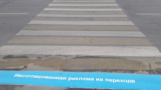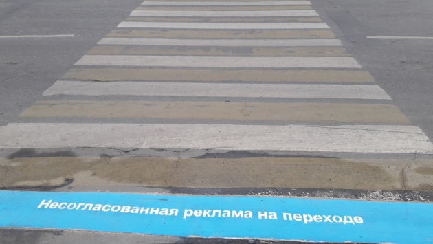 «Смахивает на Yота»: разметку перехода в центре Челябинска испортили несогласованной рекламой