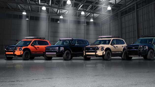 Семиместный KIA Telluride дебютировал в сентябре на неделе моды в Нью-Йорке. А теперь компания решила показать квартет концептов на SEMA Show 2018 - каждый из них построен для настоящих приключений. Telluride Horizon Roamer Посторонись, Jeep Wrangler! KIA готовит новый Telluride для самых тяжелых дорог. Первый из четырех концептов, Horizon Roamer, получает кучу хардкорных внедорожных аксессуаров. Здесь имеется защита от веток, защита двигателя, шноркель и выхлопная система с обратным клапаном. Концепту достались 32-дюймовые колеса с дисками Black Rhino. Честно говоря, этот Telluride может многое. Telluride Cadet Leader Концепт Cadet Leader такой же способный, как и предыдущий. Серьезный внедорожник, окрашенный зеленой и черной матовой краской также получил 32-дюймовые колеса с дисками Black Rhino и цепкими шинами Milestar Patagonia. В принципе, комплект внедорожных аксессуаров у него такой же, как у Horizon Roamer. Telluride Desert Drifter В то время, как первые два концепта создавались для бездорожья, Desert Drifter должен чувствовать себя в пустыне как дома. Песачный цвет кузова с черными акцентами на аксессуарах, плюс боксы для хранения, закрепленные прямо на капоте. Единственное, что удивительно, KIA и на этот концепт установила внедорожную резину для грязи, хотя в условиях пустыни требуются немного другие характеристики. Telluride Baja Glider Этот концепт заимствует некоторые детали от предыдущего концепта, однако и здесь установлен тот же комплект дисков и резины. Плюс облегченный передний силовой бампер с парой мощных светодиодных балок.