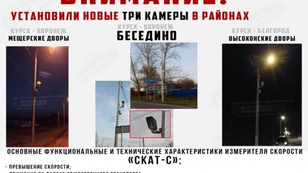 Как сообщают пользователи сообщества «ВКонтакте Автокадр46», на территории региона установлены три новых никогда не дремлющих автоинспектора. Камеры типа «Скат-С» способны фиксировать превышение скорости, движение по обочине и выделенной полосе, выезд на встречку. Теперь автолюбителям придётся соблюдать все нормативы правил дорожного движения на участках: • в селе Беседино (столбе напротив поворота на Полевую); • на выезде со стороны Курска в Высоконские дворы с левой стороны, в сторону Белгорода; • по трассе Курск-Воронеж на выезде из населённого пункта Мещерские дворы, если ехать из Курска. Будьте внимательны - соблюдайте скоростной режим!
