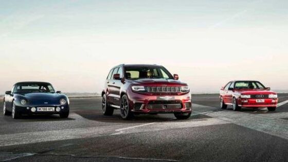 Состоялся заезд, в котором приняли участие Jeep Grand Cherokee Trackhawk, Audi Quattro и TVR Griffith. Видео об этом событии размещено в сети. Казалось бы, на дистанции сошлись разные автомобили. Тем интереснее наблюдать за заездом. Европейское подразделение Jeep выставило на гонки Jeep Trackhawk. Ему компанию на трассе составили Audi Quattro и TVR Griffith. У этих автомобилей разные параметры. Представитель Jeep тяжелее своих соперников, однако это не умоляет его скоростных качеств. Так, Grand Cherokee Trackhawk берет разгон до 100 километров за 3,7 секунд. У других соперников результаты скромнее. Audi преодолевает аналогичный рубеж за 4,1 секунды, а TVR за 6,2 секунды. В итоге финальные цифры на спидометрах оказались такими: Jeep - 180 миль в час, Audi 167 миль и TVR 145 миль. Но видео все равно лучше посмотреть.