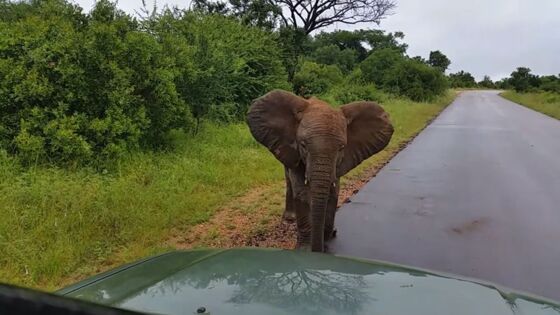 С характером: нападение слоненка на машину сняли на видео