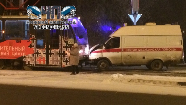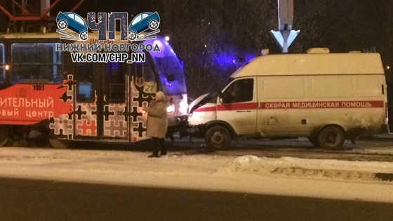 Скорая помощь не поделила дорогу с трамваем в Нижнем Новгороде