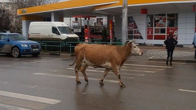 В Севастополе корова средь бела дня гуляла по проезжей части