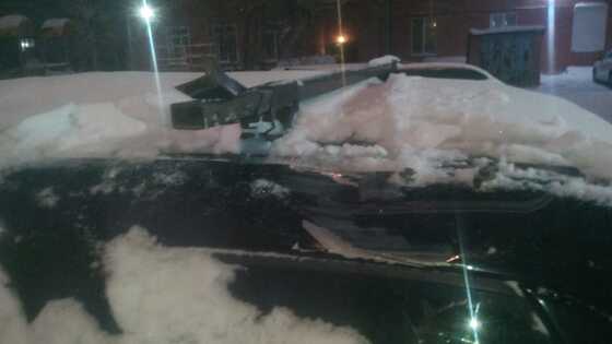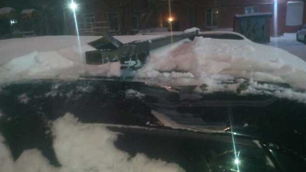 Прилетело с неба: упавшие со стройки доски помяли машину на Костычева