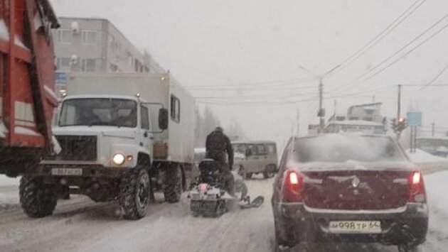 Транспортный коллапс. Саратовцы добираются до работы на снегоходах