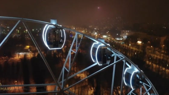 Жители Самары не устают восхищаться красивой вечерней подсветкой нового аттракциона в парке Гагарина. Один из видеоблогеров снял величественное зрелище на камеру с квадрокоптера. Смотрите, как светящиеся кабинки парят над зимним городом. Видео: читатель 63.ru Колесо обозрения в парке Гагарина монтировали всё лето и осень 2018-го. Долгожданный аттракцион запустили 28 декабря — как раз к новогодним праздникам. Но уже 1 января из-за сильного мороза его пришлось остановить. Электронику заблокировали в целях безопасности. Когда колесо опять заработало, в кассу выстроилась огромная очередь. Многие самарцы остались недовольны долгим ожиданием. Аттракцион ждёт гостей с 10 утра до 22 часов вечера. Горожане могут насладиться видами Самары с 55-метровой высоты. Все подробности о «чёртовом колесе» читайте в нашем фоторепортаже.