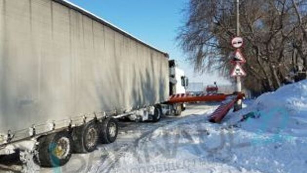 В Барнауле фура снесла ограничитель высоты на Старом мосту