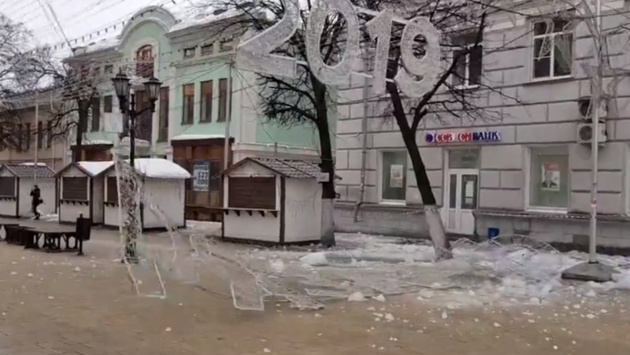 На улице Почтовой упавшая льдина сорвала вывеску «Рязань 2019»