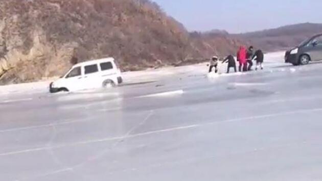 Отважные женщины голыми руками попытались вытащить авто из-подо льда