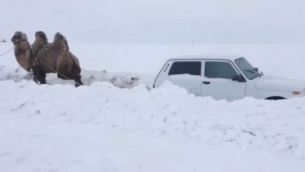 В Саратове верблюд спас из снежного плена Ниву. ВИДЕО