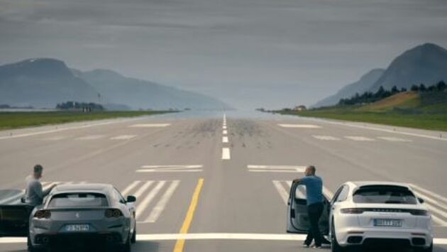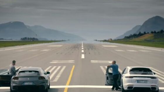 Взлетно-посадочная полоса аэропорта с океаном в конце означает, что в этой гонке главное вовремя остановиться. Задачи Top Gear всегда предполагают веселье. И в этой конкретной задаче есть все, чего мы ожидали: риск, вознаграждение, опасность, конкуренция, развлечения и просто кусочек образовательной ценности. Мэтт Леблан и Крис Харрис находятся на одном конце взлетно-посадочной полосы аэропорта, вооруженные двумя спортивными автомобилями высшего уровня: Porsche Panamera Sport Turismo и Ferrari GTC4Lusso. На другом конце ВПП находится океан. Цель? Ускориться как можно быстрее, прежде чем нажать на тормоза. Проигравшим является либо автомобиль, который медленнее, либо тот, который останавливается уже в океане. Мэтт Леблан на Ferrari имеет преимущество в производительности, по крайней мере, на бумаге. Конечно, стойкость водителя также является основным фактором - кто храбрее, а кто будет тормозить позже? Ferrari достигает 285 км/ч, прежде чем Леблан нажмет на тормоза, и остановится на красивой, аккуратной остановке с парой дюжин футов дорожного покрытия перед бампером. Это аккуратный пробег с впечатляющим результатом. Далее идет Крис Харрис на Panamera Sport Turismo. Он использует функцию избыточного ускорения Panamera, которая дает двигателю дополнительный прирост мощности до 20 секунд за раз. В этом случае этого более чем достаточно. Однако этого недостаточно, чтобы одолеть Ferrari. Porsche достигает 266 км/ч, прежде чем Харрис останавливает его. Когда Porsche наконец-то останавливается, он находится на самом краю взлетно-посадочной полосы, в нескольких шагах от воды. Хотя и Харрис, и Леблан согласны с тем, что Харрис нажал на тормоза позже, чем Леблан, Ferrari был ощутимо быстрее и все же выиграл этот забег.