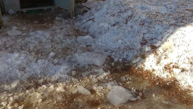 Во Ржеве куски ледяной глыбы упали на семью с ребёнком в коляске