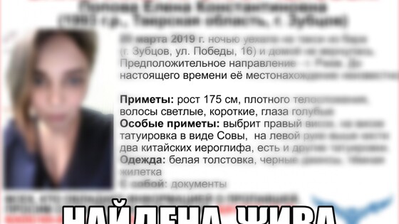 Об этом сообщает поисково-спасательный отряд "Сова" у себя в группе Вконтакте. Напомним, что девушка 1993 года рождения жительница города Зубцов. Ночью 23 марта она уехала на такси из бара, который находится по адресу: город Зубцов, ул. Победы, д. 16. Предположительно, направлялась в сторону Ржева. Где была девушка - неизвестно, волонтеры сообщают, что она жива.