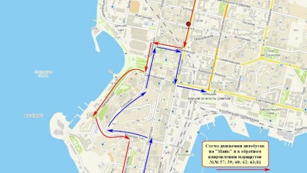В среду, 24 апреля, в центре Владивостока изменится схема движения нескольких автобусных маршрутов. Изменения будут действовать с 16:00 до 19:00. Как сообщили в управлении транспорта администрации города, автобусы, которые следуют до остановки «Маяк», в этот промежуток времени будут сворачивать на Семеновской направо и направляться до стадиона «Динамо». Затем поворачивать налево и следовать по улицам Набережной, 1-й Морской, Бестужева и далее по маршруту. Автобусы, следующие от остановки «Маяк», на улице Посьетская будут поворачивать налево на 1-ю Морскую. Затем двигаться по Тигровой, Пограничной, Семеновской и далее по маршруту. Изменения коснутся и маршрутов, конечной остановкой которых является «Железнодорожный вокзал». Автобусы этих маршрутов на улице Алеутская будут поворачивать на Светланскую и двигаться в обратном направлении. Пассажиров просят с пониманием отнестись к временным неудобствам. Ранее СМИ сообщали о предполагаемой встрече президента России Владимира Путина и лидера КНДР Ким Чен Ына в кампусе Дальневосточного федерального университета, который, как и Приморский океанариум, находится на острове Русский. При этом Приморский океанариум уже сообщил, что будет закрыт для посещения 26 апреля. Кроме того, во Владивостоке ввели временный запрет на судоходство в акватории острова Русский.