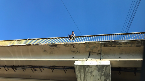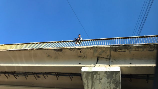 На мосту по улице Технической в Саратове (район 1-й Дачной) житель с риском для жизни сел на перила. Фотографии с места инцидента вчера, 28 мая, опубликовал в группе «Саратов онлайн» ВКонтакте пользователь Сергей Сергеев. Как видно на фото, молодой мужчина в спортивной одежде и с рюкзаком на плечах перелез через перила моста и сел на них, свесив ноги наружу - к проезжей части улицы Шехурдина. Мост при этом более чем на шесть метров возвышается над дорогой. Также очевидец запечатлел, что отчаянный житель в таком положении внимательно изучает информацию в своем смартфоне. Этой зимой из-за нерасчищенных от снега тротуаров мост на Технической жители прозвали«мостом суицидников» и «зимним саратовским квестом». Ухудшило репутацию мостового перехода появление на нем большого баннера с фразой «Кто ты?».