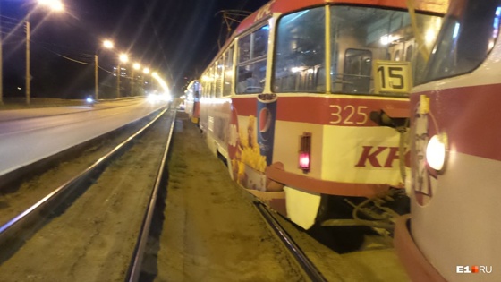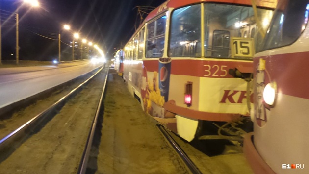 На Малышевском мосту встали трамваи из-за легковушки, застрявшей на путях