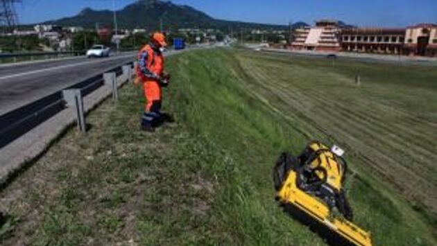 Роботы на пульте управления заменили газонокосилки вдоль трассы «Кавказ»