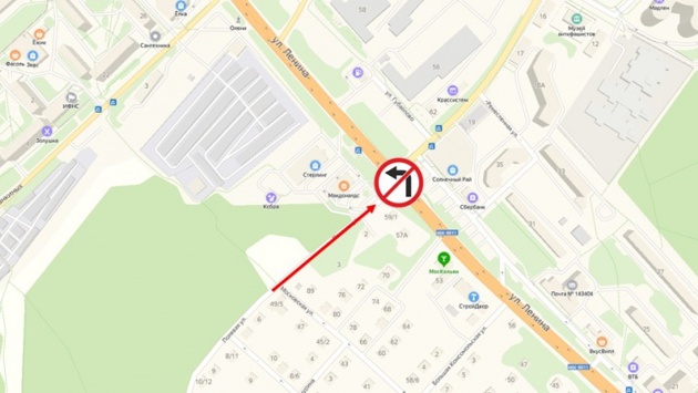 г. Красногорск ул. Полевая» (выезд на Волоколамское шоссе) – на перекрестке будет запрещен левый поворот в сторону области. Данные меры позволят разгрузить сложный перекресток, повысить пропускную способность, обеспечить безопасность пешеходов т.к. пешеходная фаза светофора совпадает с фазой, разрешающей выезд с ул. Полевая (в том числе в сторону области). Также данные меры позволят исключить транзитное движение транспорта по территории частного сектора Губайлово – 2 Источник: Администрация Красногорска