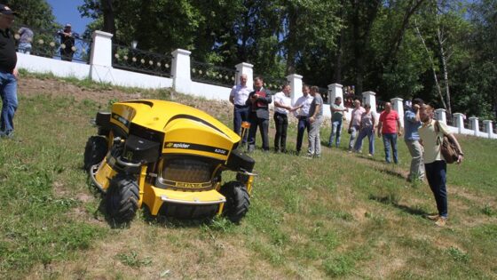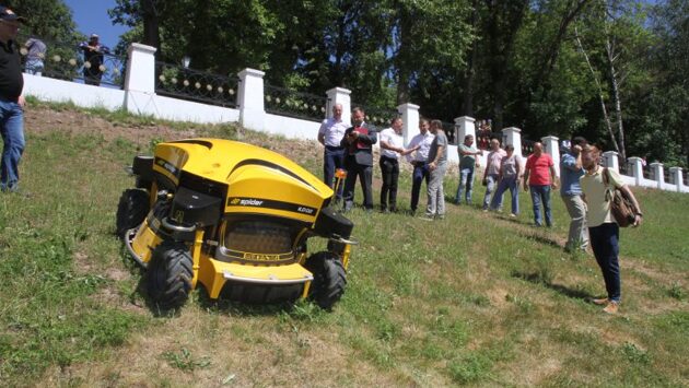 На склон парка вышел «танцующий» «Паук»-газонокосильщик