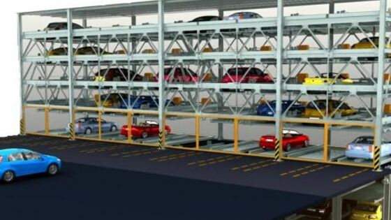 Механизированная система СНМ-100 и подъёмник П-100 были разработаны сотрудниками холдинга «Технодинамика» для осуществления многоуровневых парковок в крупных городах России. На сегодняшний день нехватка автомобильных мест является одной из самых серьезных проблем во многих городах. По предварительным данным, внедрение системы позволит решить данную проблему, организовав современные паркинги. Паркинг СНМ-100 разработан как стеллаж со встроенным специализированным поддоном для автомобилей. Эти поддоны могут передвигаться во всех направлениях для освобождения нужного места. Подъемник рассчитан на перемещение поддонов с массой до 2000 килограмм. Система является полностью герметичной и исключает вероятность падения грязи, воды и даже химических следов на машины, расположенные ниже. В общей сложности этот способ включает до шести уровней стояночных мест, что в свою очередь дает возможность разместить большое количество машин. Использование современных паркингов позволит освободить город от скопления машин. Способ парковки, разработанный российскими специалистами, выгодно выделяется на фоне иностранного доступной ценой и низкой стоимостью эксплуатации. Пока реализация данного проекта находится на рассмотрении.