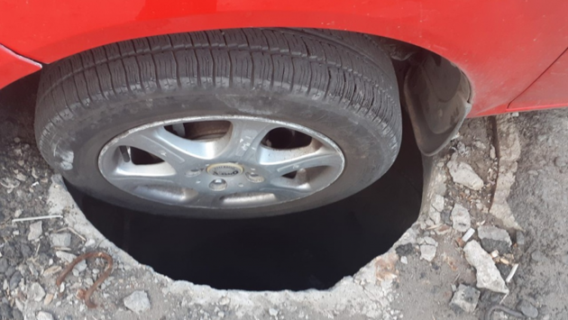 В Саратове автомобиль провалился в канализационный колодец без крышки, расположенный на границе тротуара и проезжей части. Фото с места происшествия накануне, 6 июля, вечером были опубликованы в группе «Саратов онлайн» ВКонтакте. Автор фото отметил, что лично участвовал в извлечении авто из ловушки. На фотографиях, датированных 3 июля, видно, что на улице Танкистов рядом с остановкой общественного транспорта «Сенной рынок» иномарка левым передним колесом угодила в люк без крышки и металлической опалубки. «В 2019 году в Саратове по муниципальной программе «Развитие дорожно-транспортного комплекса» отремонтируют 68 автомобильных дорог. Постановление 25 марта подписал глава города Михаил Исаев. Это развитие зашкаливает, глядя на автомобиль», - с сарказмом отметил очевидец. По его словам, глубина колодца составляет около трех метров, внутри него имеются металлические ступени и бетонные выступы. «Данная яма находится между проезжей частью и пешеходной зоной (около остановки трамвая). Соответственно, если человек отвлечется, глядя по сторонам или говоря по телефону, то не исключен летальный исход при падении в яму. Тем более, если этим человеком окажется невнимательный ребенок или пожилой человек. Одним словом, дебилизм», - заключил автор.