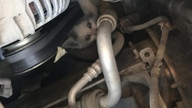 Екатеринбуржцы спасли котенка, застрявшего в двигателе легковушки